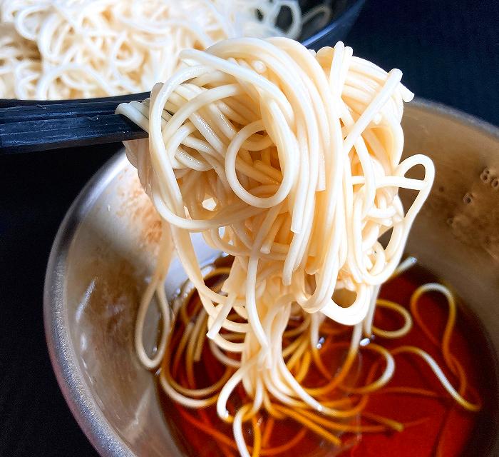 今回も、パッケージ記載のとおりにそうめんを調理しました。