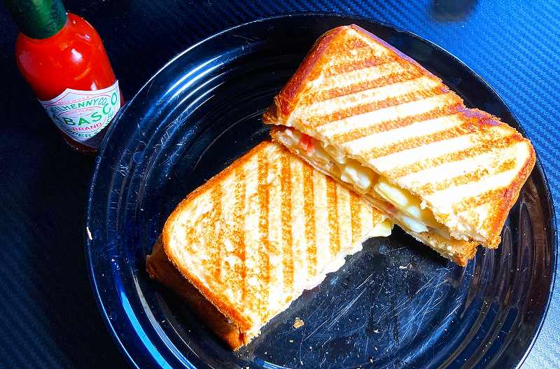 先ず、ホットサンドメーカーの両方の内側にサラダ油を薄く塗り広げてパンをセットし、2枚どちらにも焼き色が付くまでひっくり返しながら炒めていきます。